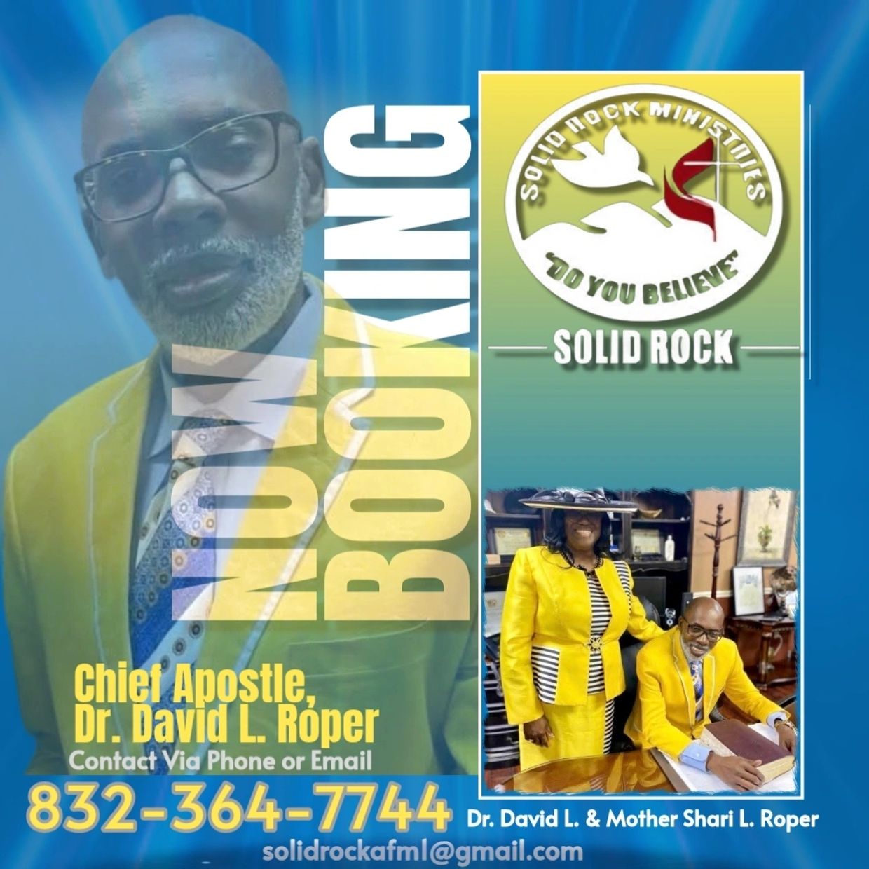 Welcome to Solid Rock Apostolic Faith Ministries. Our Founder & Overseer is Chief Apostle, Dr. David L. Roper, and our Co-Founder & First Lady is Mother Shari L. Roper.